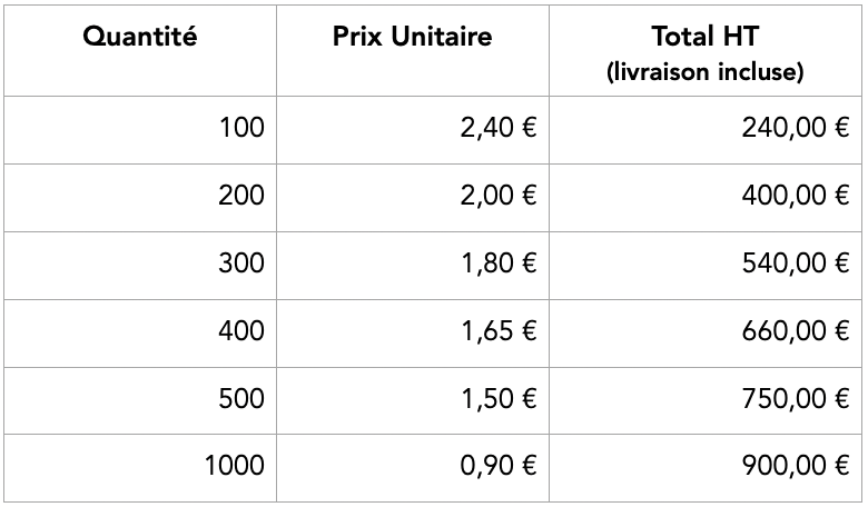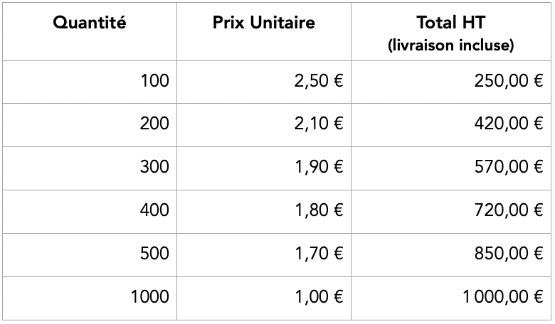 Nos Tarifs *